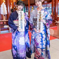 2025年12⽉11⽇(⽊)、新潟を拠点に活動するNGT48の⼆⼗歳となる新成⼈メンバー杉本萌と⾕⼝陽⾹(はるか)の2名が、新潟縣護國神社にて「NGT48⼆⼗歳のつどい」を執り⾏いました。 彩り豊かな振袖に⾝を包み、本殿でのご祈祷では神妙な⾯持ちで参
