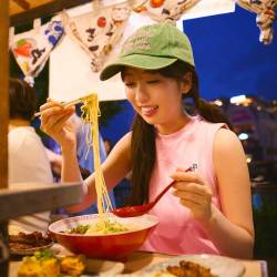 行く機会がそもそもなかったので、HKT48時代には行かなかったです。今の時代らしく、海外の方がたくさんいらっしゃいました。こんなに屋台がたくさんあったんですね。