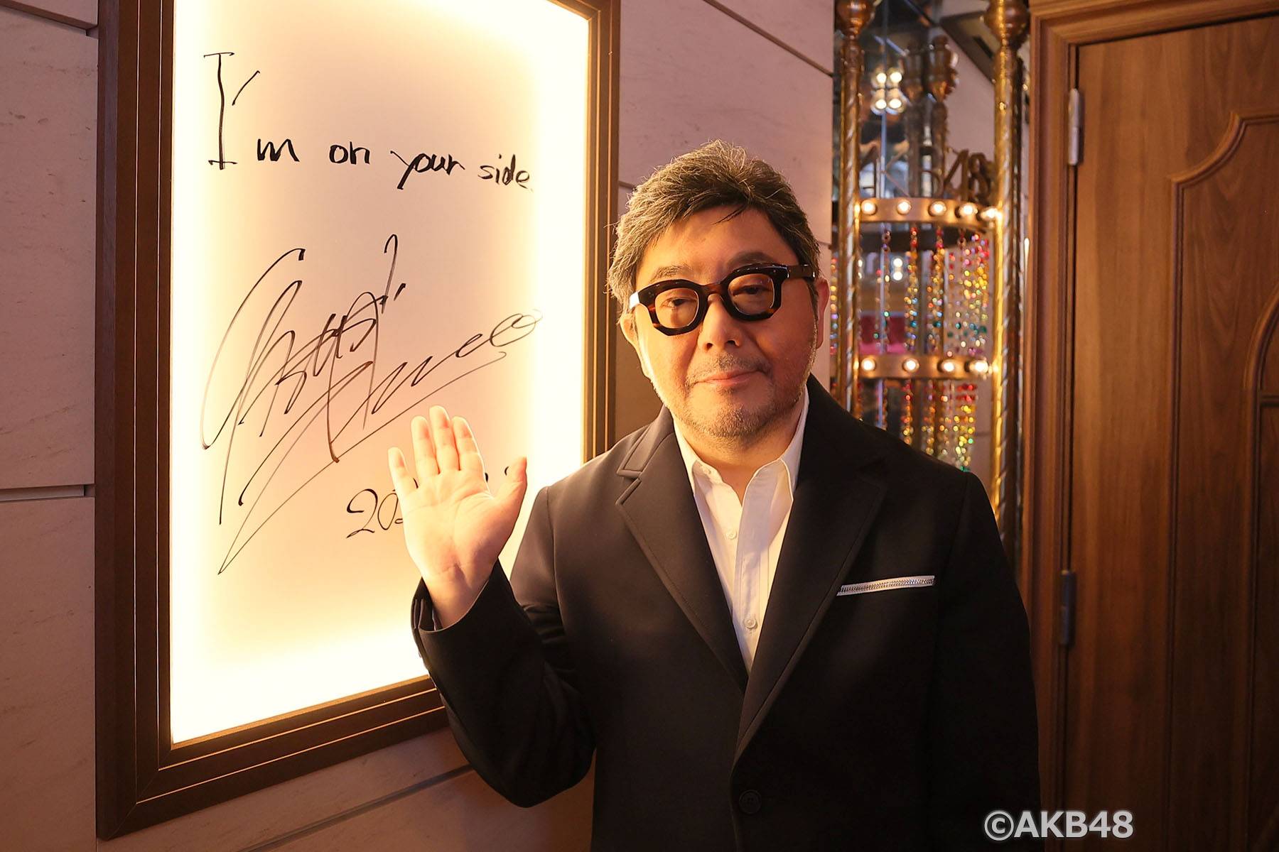 2025年12月8日、AKB48劇場20周年記念特別公演の前に、秋元康総合プロデューサーがAKB48劇場を訪れ、高橋みなみ・指原莉乃、現役メンバーの倉野尾成美・小栗有以・伊藤百花とともに囲み取材に臨んだ。【壁に残した “I’m on your side”と直筆メッセージの意味】