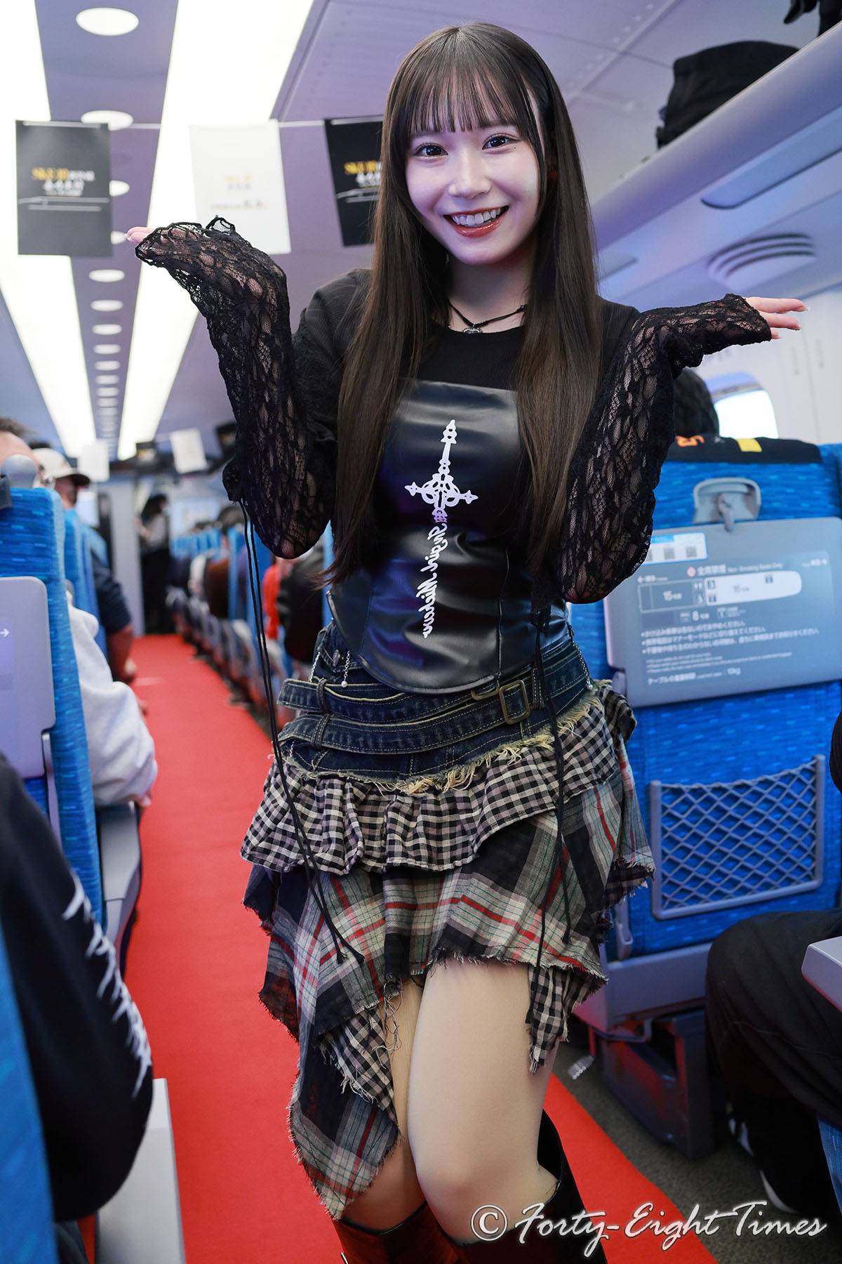 ファッションショーの第二部では衣装のコンセプトがガラッと変わり、“甘め”衣装の二人が「重力シンパシー」に合わせて再び車内に登場。ライブには慣れているファンの方々も、ファッションショーはとても新鮮に映ったはず。しかも新幹線の車内という特別な空間ということもあって、ひときわ特別な思い出となったのではないでしょうか。