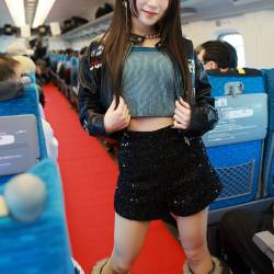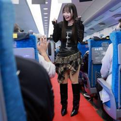 SKE48の楽曲『Change Your World』にのせて、クールな“辛め”衣装を纏った二人が15号車・16号車の通路を華麗にウォーキング。超至近距離を颯爽と歩く二人の姿に熱い視線が集まりました。
