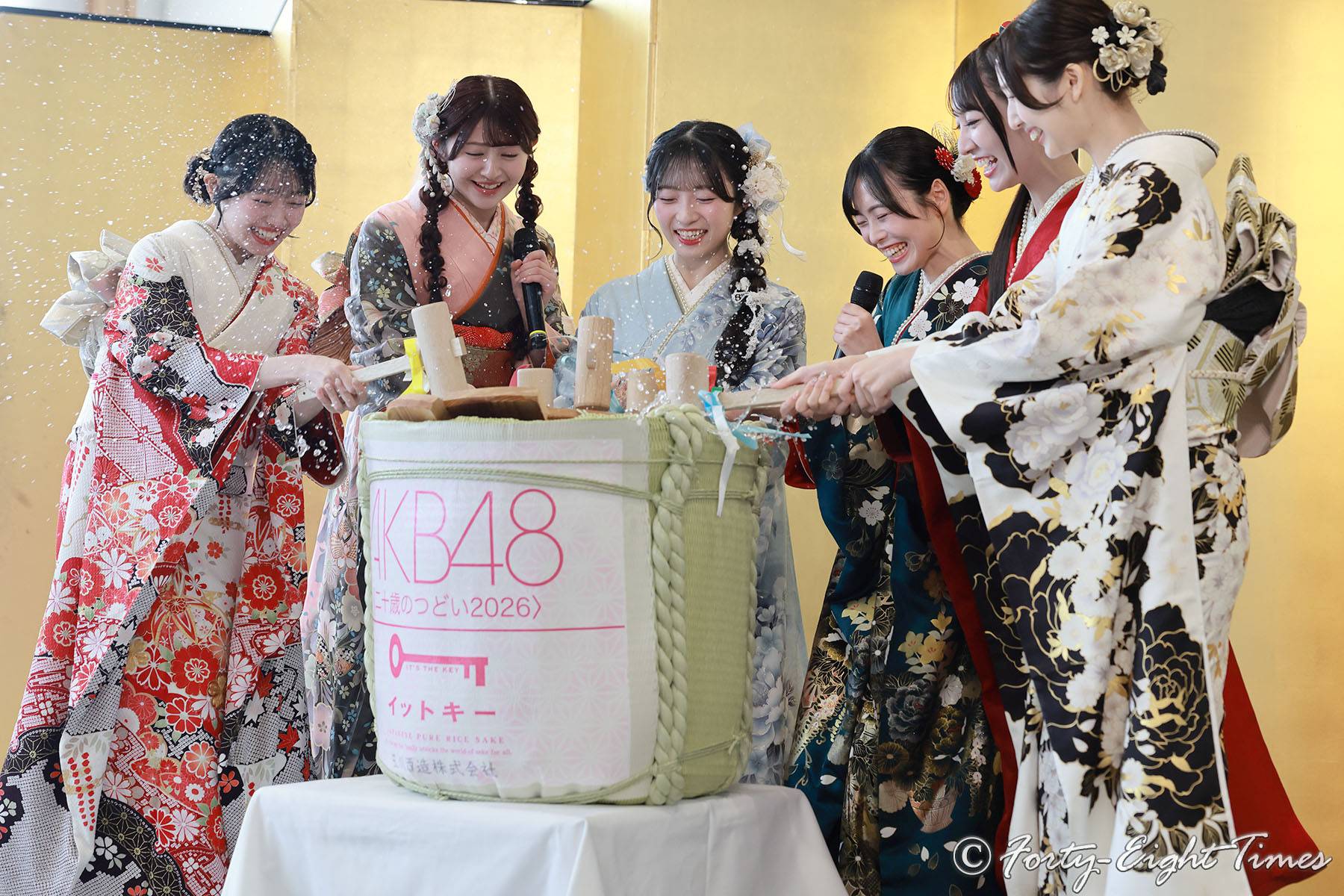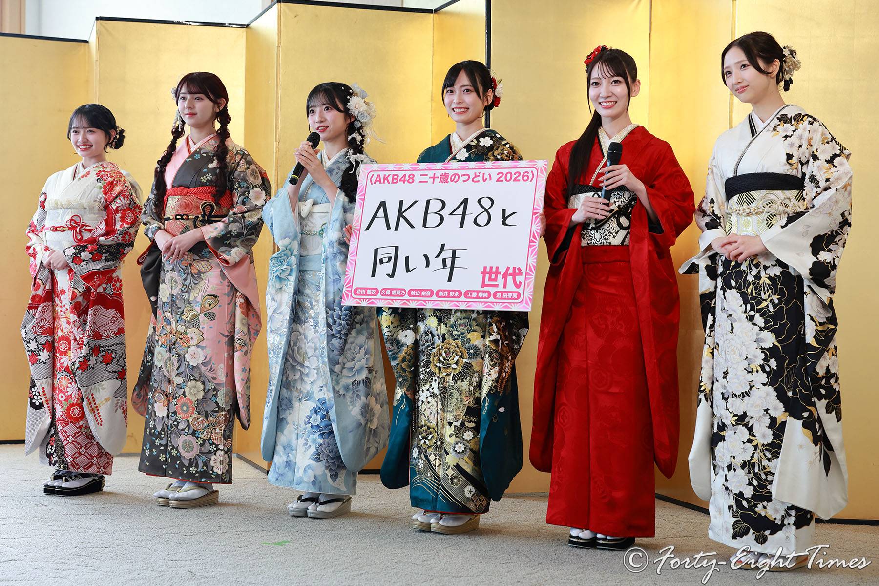 2026年1月12日、AKB48の新成人メンバー6名が神田明神で「AKB48 二十歳のつどい 2026」を実施。参加したAKB48メンバーは、秋⼭由奈・新井彩永・⼯藤華純・久保姫菜乃・迫 由芽実・花⽥藍⾐の6名。毎年恒例となっている「今年の新成⼈を表現するなら何世代︖」のテーマについては、全員で声を揃えて「“AKB48と同い年世代”です︕」と発表し、そして全員でAKB48ポーズを披露しました。