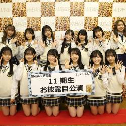 12月7日、NMB4811期研究生が大阪・難波のNMB48劇場で「11期生お披露目公演」を行いました。 2025年5月から6月にかけて「NMB48第11期生オーディション」の募集が行われ、8月に追加募集も実施。 11月8日に開催された「NMB